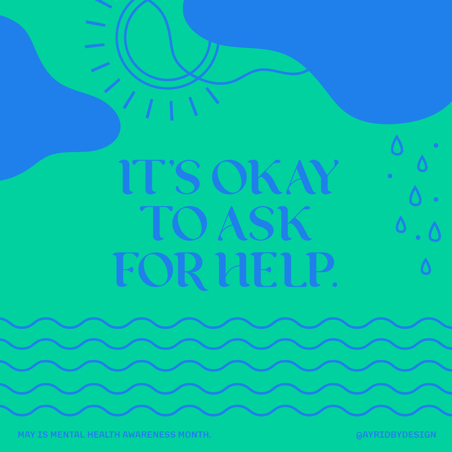 I decided to share a designed post along with a personalised caption on Instagram and Facebook every Monday for the month of May as part of mental health awareness. These 4 posters were meant to be enough to get the message across even if someone chose not to read the long captions that accompanied them. I used weather elements and sharp versus wavy lines to suggest feelings/moods throughout the designs.